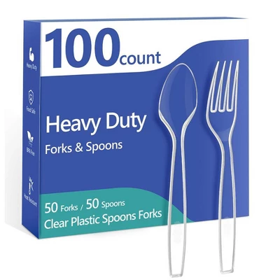 Itopfox 100-Pack Heavy Duty Plastic Silverware Set – 50 Forks & Spoons BPA-Free, Heat Resistant Disposable Utensils For Parties, Events, Everyday Use