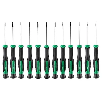 Discover this 12 – piece mini screwdriver set, a must – have for anyone dealing with small screws. Made from heat – treated premium SUP10 steel, it offers excellent hardness and corrosion resistance. The magnetic tips firmly hold screws, eliminating the hassle of dropped screws. The 360 – degree rotatable design allows for easy operation from any angle, especially in tight spaces. It comes in 3 styles and 12 sizes, clearly marked on the handle end for quick identification. The SureGrip handle with a knurled and triangular texture provides large torque for precise work. Whether you’re fixing your smartphone, laptop, or a delicate watch, this set simplifies the process, bringing efficiency and convenience to your DIY projects and professional tasks.