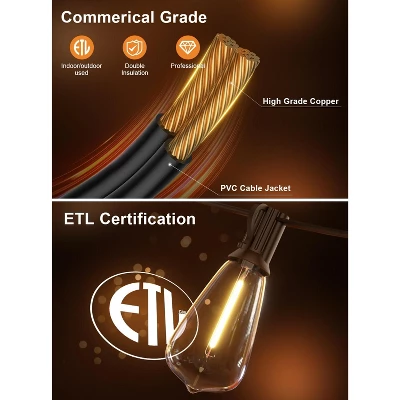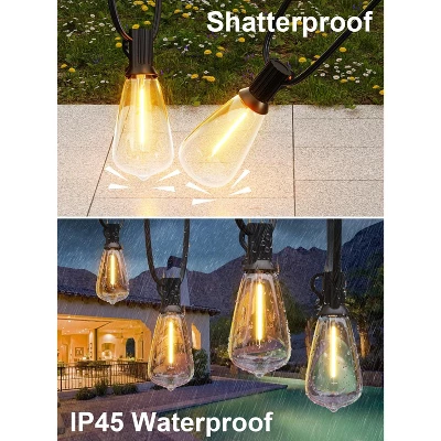 Enhance your outdoor space with these outdoor string lights! Featuring 64 shatterproof ST38 LED bulbs on a 120 – foot line, they offer wide – range illumination. These energy – efficient bulbs use less electricity than traditional ones, stay cool when on, and have an impressive lifespan of up to 30,000 hours. With a 2700K color temperature, they create a cozy and inviting atmosphere. They’re all – weather resistant, so you don’t need to worry about changing weather. You can adjust the brightness from 5 – 100%, making them suitable for romantic parties or family gatherings. Compatible with most dimmer switches (dimmer not included), they’re easy to use. Ideal for backyards, gazebos, porches, and gardens, these lights will transform your outdoor area into a warm and inviting space.