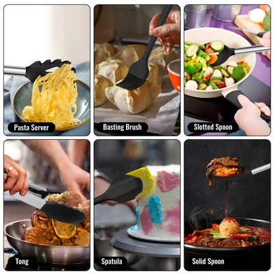 Discover this all – in – one 14 – piece kitchen utensils set. Crafted from food – grade silicone, it’s non – toxic, odorless, and can withstand temperatures up to 446°F. The silicone forms an insulating layer on the steel handle, reducing heat conduction and ensuring durability. The soft silicone head is designed for nonstick cookware, protecting it from scratches and extending its service life. It’s dishwasher – safe for easy cleaning. Each utensil has a hanging loop, and there’s a plastic holder with drainage holes for convenient storage. Whether you’re cooking or baking, this set has you covered. It’s perfect for daily kitchen tasks and makes a wonderful gift for housewarming, wedding, or New Year, helping you keep your kitchen organized and your cooking experience enjoyable.
