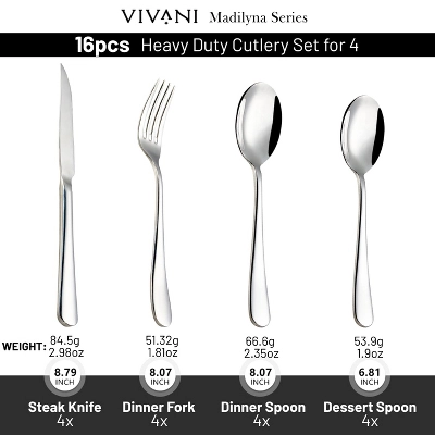 Itopfox 16-Piece Heavy Duty Silverware Set With Steak Knives, Stainless Steel Cutlery For 4, Dishwasher Safe Flatware For Home, Dorms, Restaurants