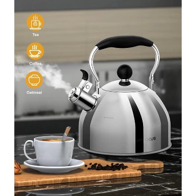 Discover this 2 – quart stainless steel whistling tea kettle, a must – have for tea and coffee lovers. Made of SUS304 food – grade solid stainless steel, it’s BPA – free and durable. The unique loud whistling function alerts you when the water is boiled, preventing over – boiling. The ergonomic, foldable handle makes it easy to use and store. It boils water fast with a capsuled bottom and self – sealing lid, increasing efficiency. This teapot is compatible with various stovetops, including induction, electric, gas, and natural gas. Use small or medium fire for optimal results. Whether you’re at home, in an apartment, dorm, or on a camping trip, it brings convenience to your daily routine, saving you time and energy.