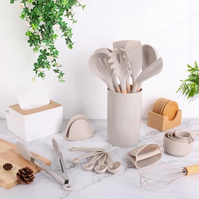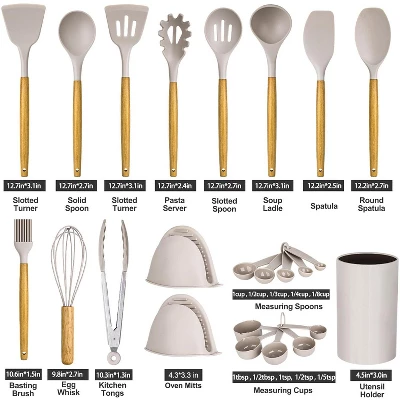Upgrade your kitchen with this 24 – piece heat – resistant non – stick silicone kitchen utensils set! Crafted from food – grade silicone, these utensils are odor – free after a simple pre – use treatment of soaking for half an hour and air – drying for about 3 hours. They can handle high temperatures up to 446°F/230°C, making them perfect for all your cooking and baking needs. The set comes with a wide range of tools, from spoons to spatulas, ensuring you have everything you need in the kitchen. The integrated stainless – steel core provides durability and toughness, and they’re easy to clean. However, to preserve the wooden handles, avoid using them in the dishwasher. With this set, you can cook with confidence, knowing your pots are protected from scratches and your food won’t stick. Contact customer service if you have any queries, and they’ll assist you promptly.