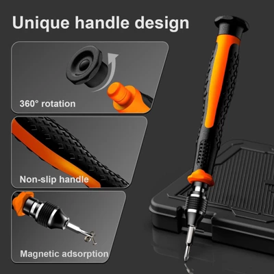 Discover this 38 – piece small precision screwdriver set, a must – have for all your repair needs. With 30 CRV screwdriver bits in various types like phillips, flathead, torx, and others, it offers great versatility. The bits are crafted from high – quality CR – V chrome vanadium steel, ensuring they are rust – resistant and durable. The handle, made of TPR and PP materials, has a non – slip design for a comfortable and secure grip. Its rotatable top and magnetic adsorption between the handle head and screw head make screw removal and bit replacement a breeze. The set also includes useful portable gadgets such as spudgers, tweezers, a cleaning brush, and a suction cup with SIM card thimble. It has an incredibly wide scope of application, suitable for Macbooks, computers, laptops, iPhones, game consoles like PS4/PS5 and Xbox, as well as glasses, watches, and many other electronic devices. Whether you’re a professional repairer or a DIY enthusiast, this set will make your repair tasks much easier and more efficient.