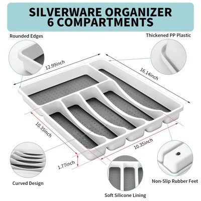 Itopfox 53-Piece Stainless Steel Flatware Set For 8 With Drawer Organizer, Includes Spoons, Forks, Steak Knives & Serving Utensils, Mirror Polished