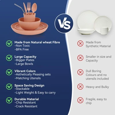 Discover this amazing 56 – piece dinnerware set! Crafted from natural straw fiber and food – grade safe PP materials, it’s 100% BPA – free and non – toxic, ensuring the health of you and your family. The set includes plates, bowls, cups, utensils, and straws, perfect for various occasions like picnics, parties, camping, or daily meals at home, office, school, or during travel. It’s lightweight, so kids can hold it easily, and yet sturdy enough to withstand daily use. The dinnerware is dishwasher, freezer, and microwave safe, offering great convenience. You can store leftovers in the freezer and reheat them in the microwave. Its stackable design with smooth round edges saves countertop space. Whether you’re an adult, an elderly person, or a child, this set will adapt perfectly to your needs, bringing practicality and style to your dining experience.