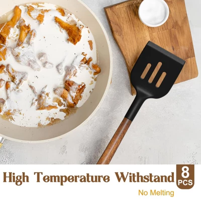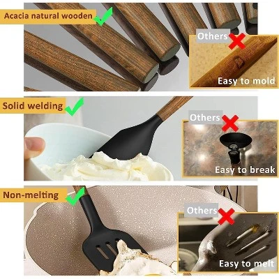 Discover this amazing silicone cooking utensil set! It features high – quality natural acacia wooden handles that are incredibly durable, lasting up to 40 years with proper care. The silicone part can withstand high temperatures up to 446°F/230°C, ensuring no food sticking and protecting your cookware. Made of food – grade, BPA – free silicone, it’s suitable for all food types. The set includes a variety of utensils like ladles, spoons, and spatulas. When using it for the first time, soak the utensils for half an hour and then air – dry for about 3 hours to get rid of the original smell. It’s a perfect choice for anyone who loves cooking, great for various occasions such as housewarmings, weddings, and holidays. With a utensils holder, it helps you keep your kitchen organized. Each wooden handle has a unique texture, adding a natural charm to your cooking experience.