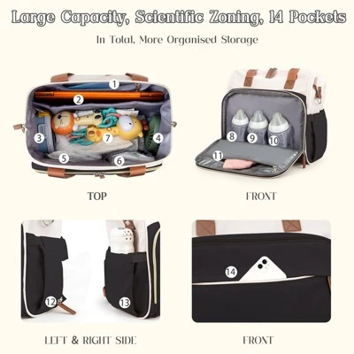 Itopfox Convertible Diaper Backpack Tote For Moms, Multi-Functional Travel Bag With 14 Pockets, Waterproof & Durable