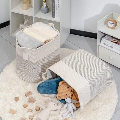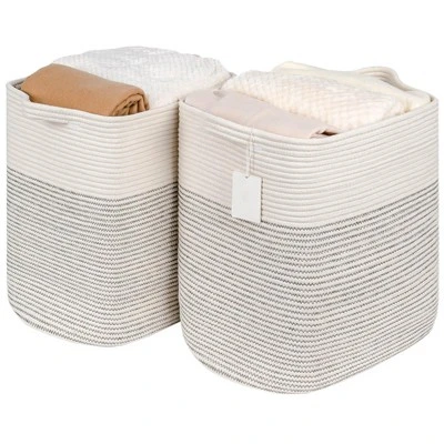Upgrade your home organization with these storage baskets. Crafted from high – quality fabric cotton and featuring a rope – woven design, they’re both durable and decorative. The baskets come with convenient handles, making it easy to move them around. Ideal for the living room or closet, they can store blankets, toys, and clothes. Their large capacity meets various storage needs, and the two classic color options, white and black line, can match any home decor. Keep your space tidy and stylish with these practical storage solutions.