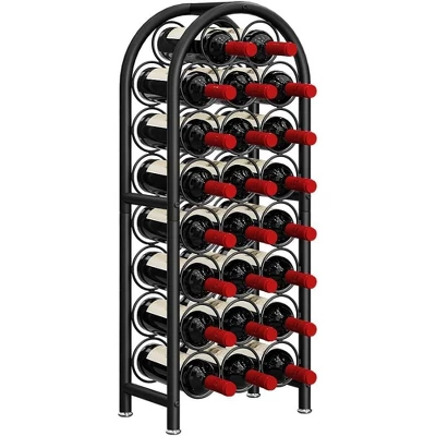 Introducing our freestanding floor wine rack, a must – have for wine enthusiasts! Crafted from sturdy metal pipes and wire with a powder – coat finish, it’s anti – oxidation and anti – rust. With a large capacity to hold up to 23 standard wine bottles, it maximizes storage space. The horizontal storage method keeps the cork moist, ensuring your wine ages gracefully. It can be placed in any home setting like the kitchen, dining room, wine cellar, or bar. The arched design allows it to stand freely, and the handle on top makes it easy to move around. Whether you’re organizing your bar or cellar, this wine rack is the perfect solution for convenient and efficient wine storage.