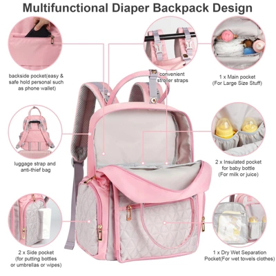 - Perfect Gift: The pink diaper backpack is a thoughtful present for infants and new mothers. It can also be used as a computer bag or travel backpack, making it useful in various situations.