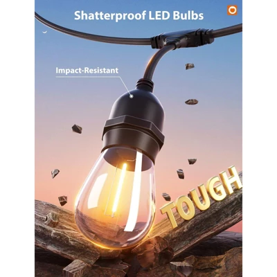 Transform your outdoor space with these stunning LED outdoor string lights. Each strand features 15 shatterproof E17 LED edison bulbs, spaced 3.11 feet apart for an even, captivating glow. These are ETL – listed, commercial – grade lights with a dual parallel wiring structure, ensuring they are weatherproof and durable enough for year – round use. Installation is a breeze using built – in hooks, guide wires, nails, or zip ties, and you can connect up to 28 strands for expansive coverage. With dimmer compatibility, you can create the perfect ambiance for any occasion, whether it’s a lively party or a romantic wedding. They’re suitable for decks, porches, patios, gardens, cafes, and more. These energy – efficient lights not only brighten up your space but also lower electricity costs, bringing convenience and charm to your life.