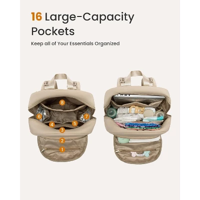 - Equipped with 2 compartments and 14 pockets, including 2 insulated pockets for baby bottles (4oz – 11oz), a pocket for laptops up to 15.6″, an anti – theft back pocket, and a side wipe pocket for quick access.