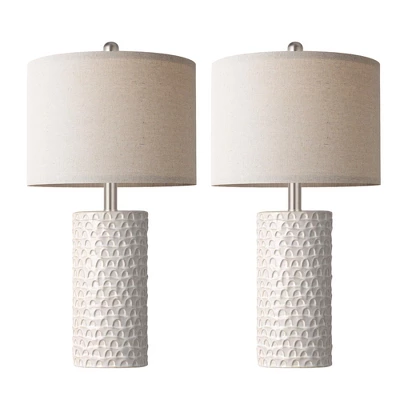 Itopfox Modern Ceramic Table Lamp Set Of 2, Rustic Farmhouse Bedside Lamps For Living Room & Bedroom, White Beige Desk Lamp For End Table Home Decor