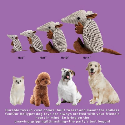 Itopfox Plush Dog Squeaky Toy Stuffed Armadillo Animal Pet Puppy Chew Toys For Small Medium Large All Breed Sizes Dogs, Gray
