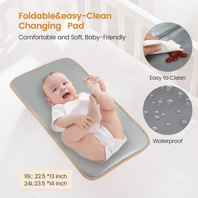 - Thoughtfully designed for outings. It comes with a foldable waterproof changing pad for convenient diaper changes, a removable pacifier pouch for secure storage, and a top stroller strap to hang the bag on a stroller, keeping your hands free.