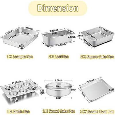 Itopfox Stainless Steel Bakeware Set, 11-Piece Toaster Oven Baking Pan Set With Lasagna, Cake, Loaf & Muffin Pans, Dishwasher Safe