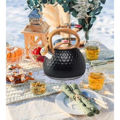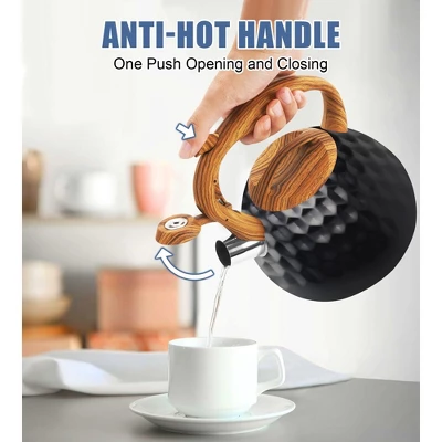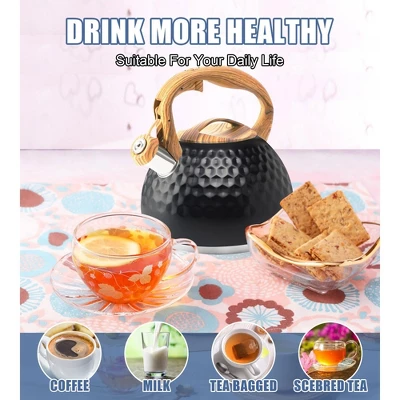 Discover this amazing 3.2 – quart (3 – liter) stainless – steel tea kettle! Crafted from food – grade stainless steel, it offers rapid heating, anti – oxidation, anti – corrosion, and anti – rust properties, ensuring clean and healthy hot water. The kettle has a loud whistling feature that alerts you when the water is ready, even in a noisy setting. Its ergonomic soft plastic wood – grain handle provides comfort while pouring and filling, and comes with a convenient one – button switch for the water outlet. Suitable for a 6 – 7 person family or a party, it can pour 12 glasses of water at a time, eliminating the need for frequent boiling. It’s compatible with a wide range of stoves, such as induction, gas, electric ceramic, halogen, and wood stoves. Remember to use low – medium heat when boiling water and clean the kettle immediately after use. It’s a perfect addition to your kitchen, bringing convenience to your daily life.