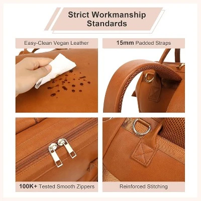 - Premium durability: Made from high – quality vegan leather, this lightweight diaper backpack is built for daily use. Heavy – duty zippers (tested to 100,000+ cycles) and reinforced stitching maintain its structure. Tear – resistant, padded straps offer comfort, and abrasion – resistant stroller straps and a reinforced luggage sleeve ensure long – lasting use.
