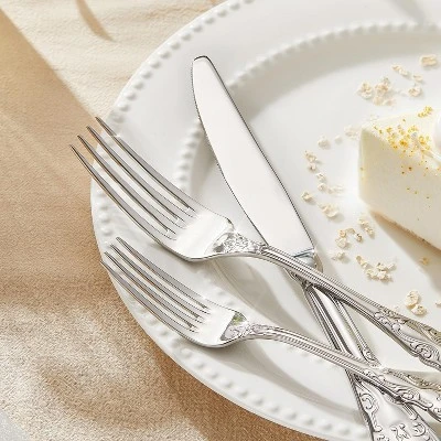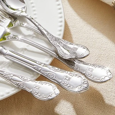 Upgrade your dining experience with this 20 – piece silverware set. It’s designed for 4 people, including 4 dinner knives, 4 dinner forks, 4 dinner spoons, 4 salad forks, and 4 teaspoons. The set is crafted from premium 18/10 food – grade stainless steel, ensuring excellent corrosion resistance and long – lasting durability. The vintage floral design on the thick hand – carved handles with embossed blooms combines retro luxury and modern charm, adding a touch of elegance to any meal. It has a mirror – polished surface and streamline body molding, which makes it a breeze to clean. You’ll never need single – use plastic again. This set is versatile, suitable for both everyday family dinners and special occasions like weddings and upscale parties. It’s an ideal gift for those upgrading their table settings or for new homeowners. With this set, you can enhance your dining atmosphere and enjoy a more refined lifestyle.